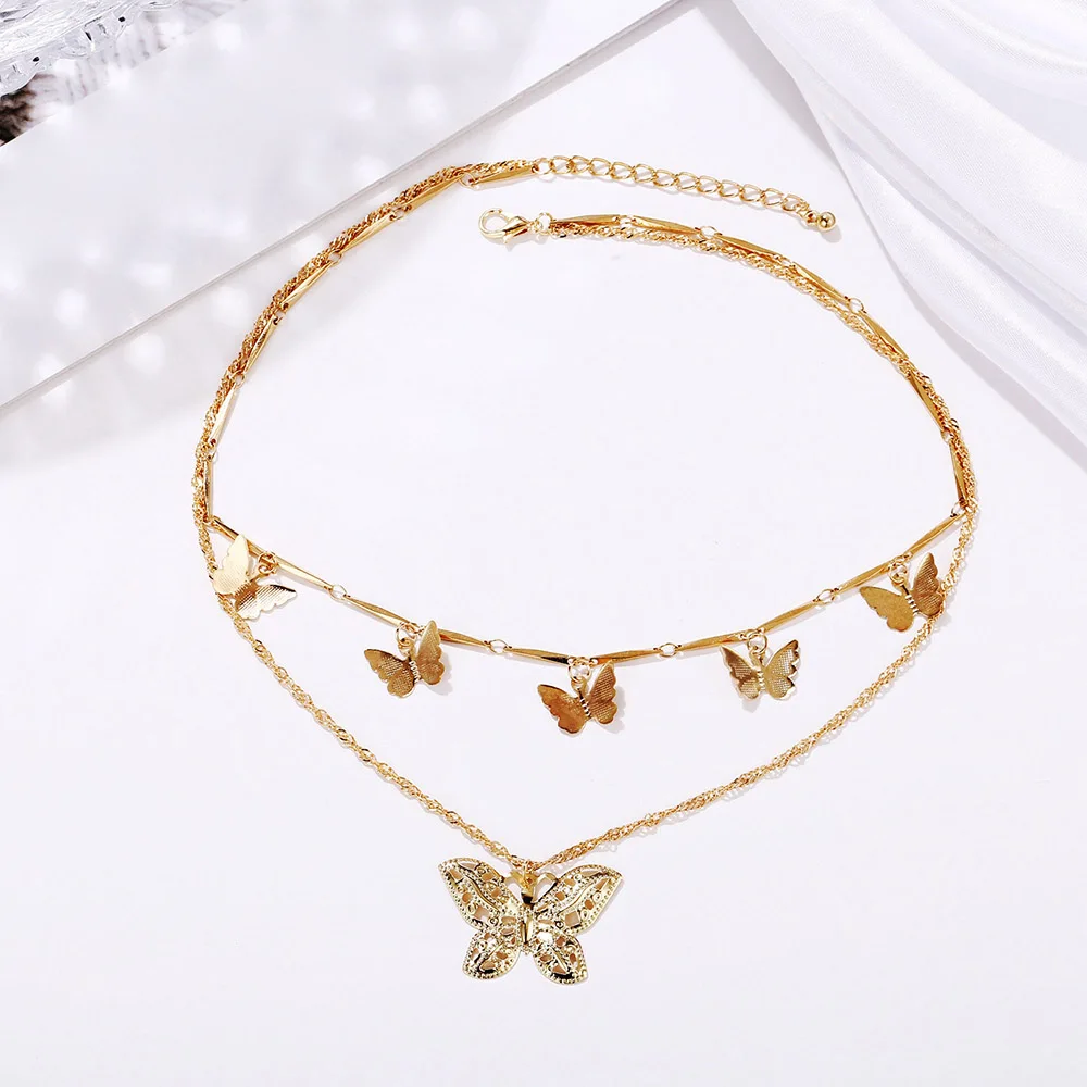 Cute Butterfly Necklaces For Women Bohemia Gold Color Pendant Choker Chains Jewelry Gift
