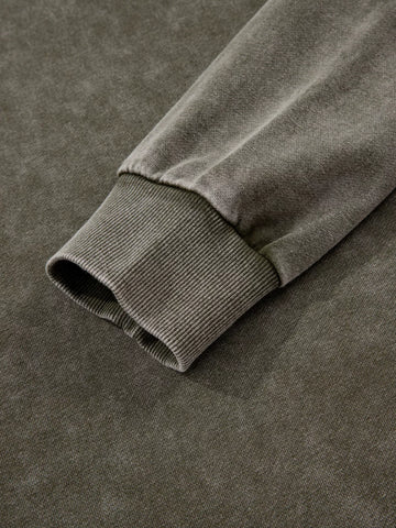Lace Patchwork Detail Notched Mineral Wash Sweatshirt