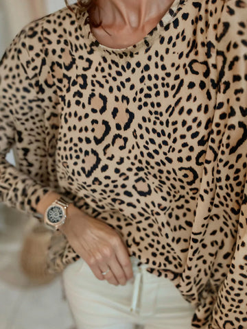 The Leopard Round Neck Long Sleeve T-Shirt is far and away, one of our most popular items. People can't seem to get enough of it.