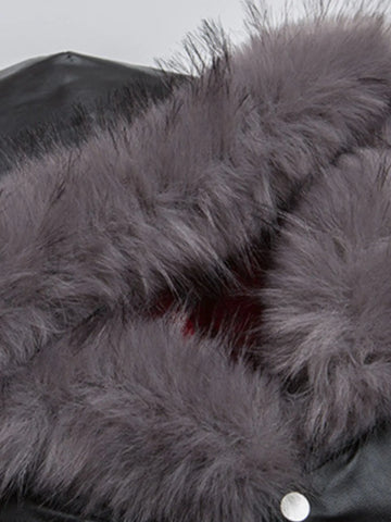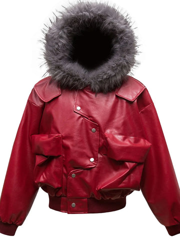 Men's Leather Bomber Jacket with Faux Fur Hood