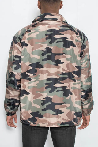 WEIV Men's Full Size Camo Print Snap Down Jacket Plus Size