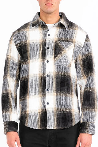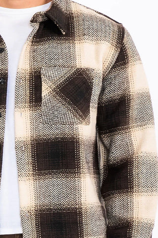 Stay stylish and cozy with this flannel plaid button-down shacket. The combination of a shirt and jacket, this shacket is perfect for layering during transitional seasons. The classic plaid pattern adds a timeless touch to your look. Whether you're running errands or enjoying a day out, this versatile piece will keep you comfortable and on-trend. Elevate your casual style with this must-have addition to your wardrobe.