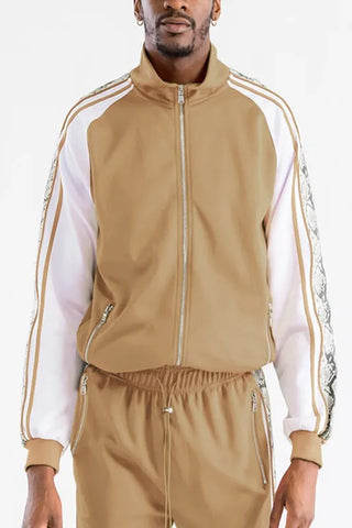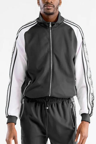 WEIV Men's Full Size Snake Side Print Track Jacket Plus Size
