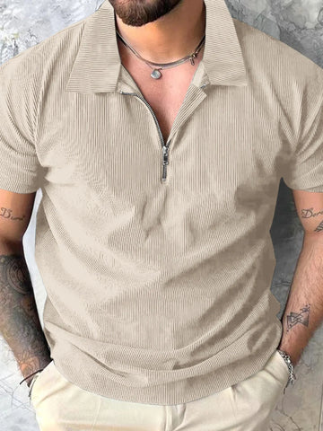Men's Full Size Quarter Zip Short Sleeve Polo Plus Size