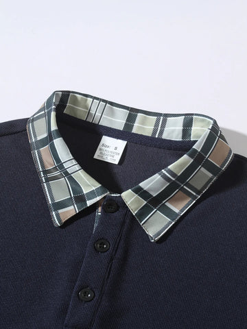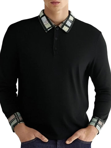 Men's Long Sleeve Plaid Collar Polo Shirt