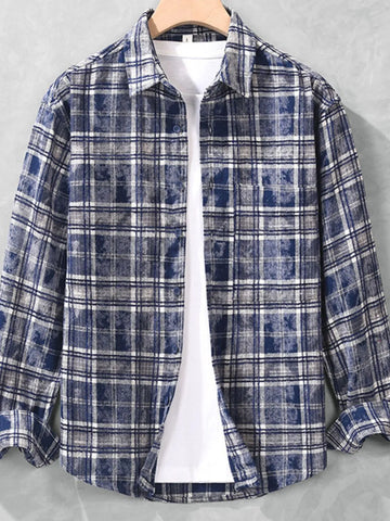 Men's Plus Size Plaid Button Up Long Sleeve Shirt