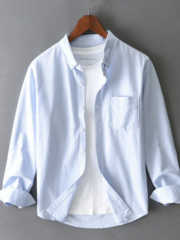 Men's Plus Size Striped Button Up Long Sleeve Shirt