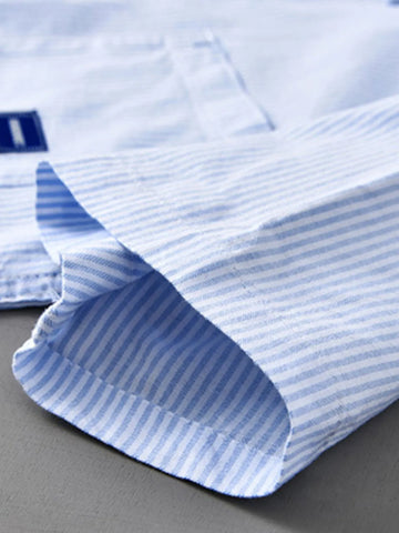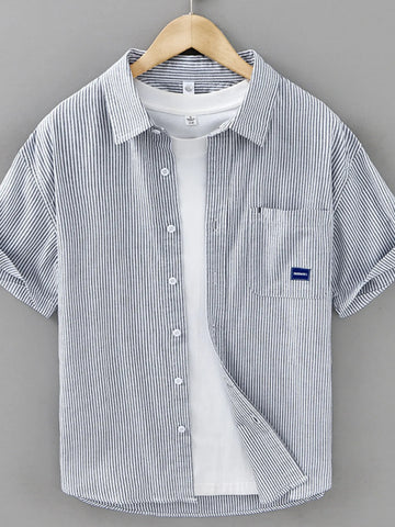Men's Plus Size Striped Button Up Short Sleeve Shirt