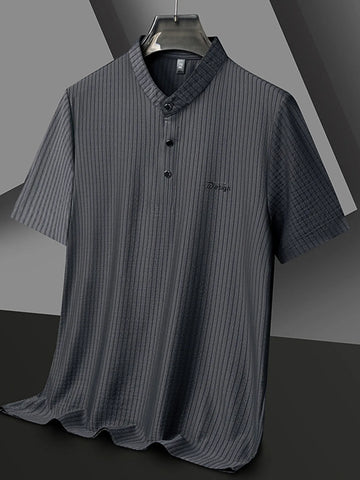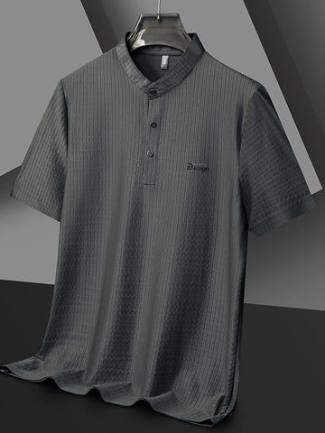 Men's Plus Size Textured Button Detail Short Sleeve Top