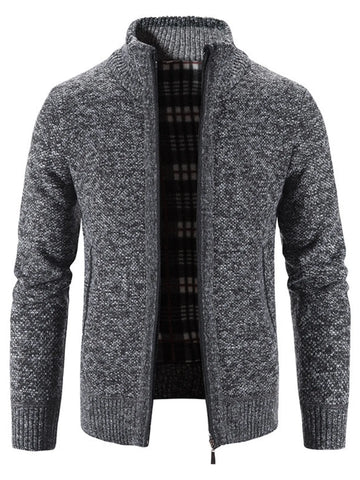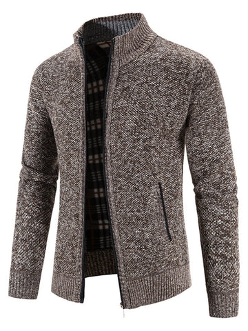 Men's Plus Size Zip-Up Long Sleeve Cardigan