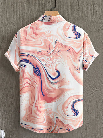Men's Printed Button Up Short Sleeve Shirt