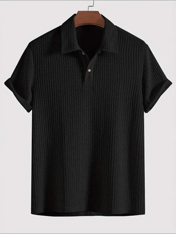 Men's Waffle-Knit Collared Neck Short Sleeve Polo