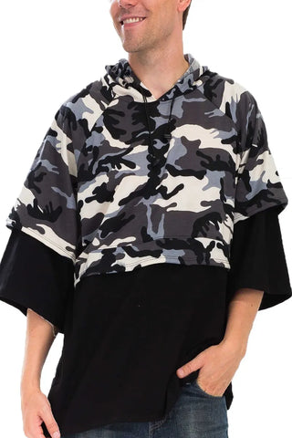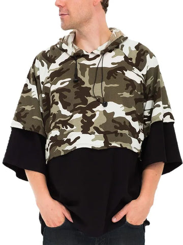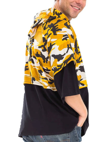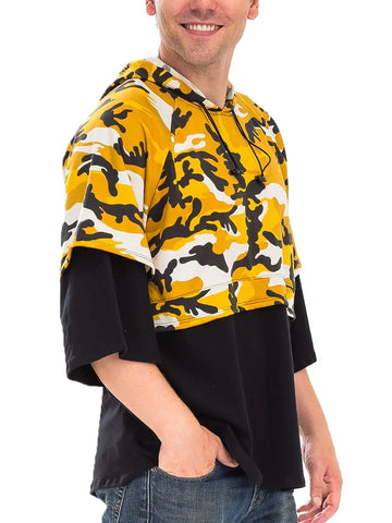 This striking Urban Camouflage Layered Hoodie features a bold yellow and black camo print that makes a powerful street style statement. Crafted from comfortable cotton blend fabric, it showcases an innovative layered design with short sleeves over long sleeves for a contemporary urban look. The oversized relaxed fit provides maximum comfort while the adjustable hood adds functional style. Perfect for casual wear, this hoodie combines military-inspired camouflage patterns with modern streetwear aesthetics. The contrasting black base layer creates visual depth and versatility, making it an ideal choice for fashion-forward individuals seeking unique layered styling options.