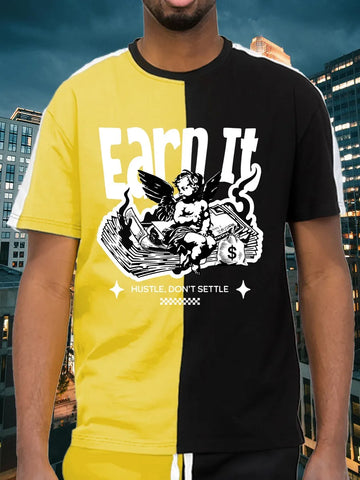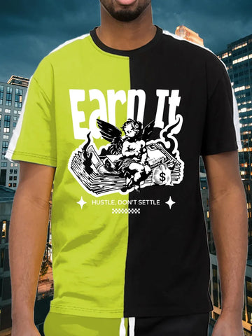 WEIV Men's Full Size Earn It Print T-shirt Plus Size