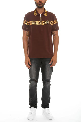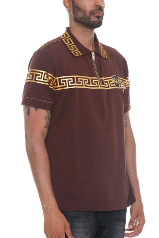 WEIV Men's Full Size Greek Key Pattern Short Sleeve Polo Shirt Plus Size