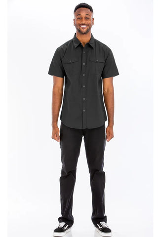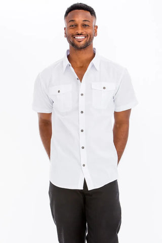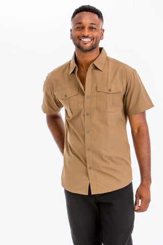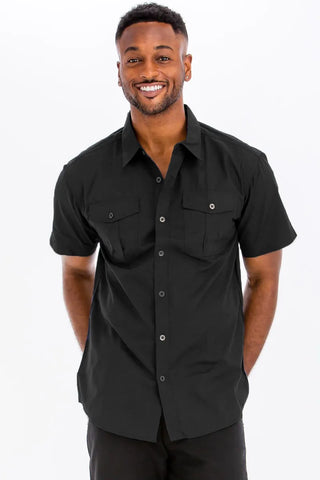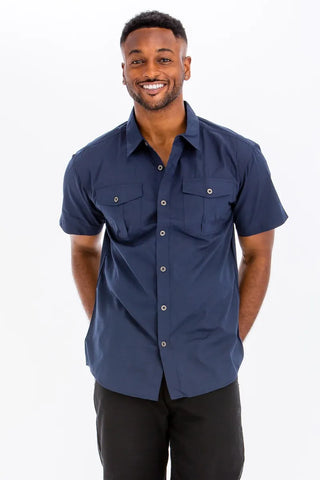Elevate your casual wardrobe with this Two Chest Pocket Short Sleeve Shirt. The two chest pockets add a stylish and functional detail to this classic short-sleeve shirt. Perfect for a relaxed and laid-back look, this shirt can be easily dressed up or down for various occasions. Stay cool and comfortable in this versatile piece that adds a touch of sophistication to your outfit.