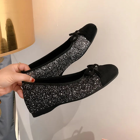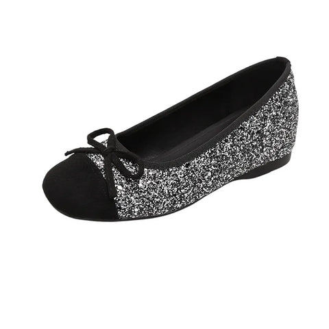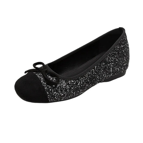 Bow Contrast Sequin Round Toe Slip-Ons
