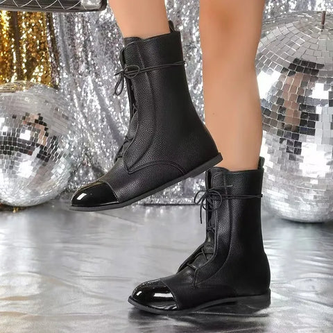 Contrast Lace Up Point Toe Boots