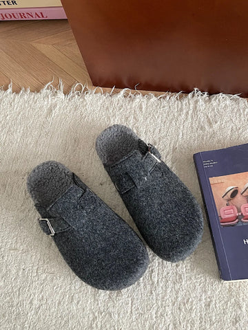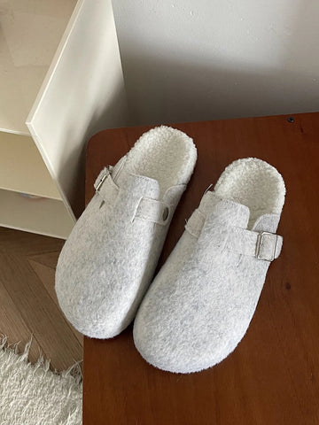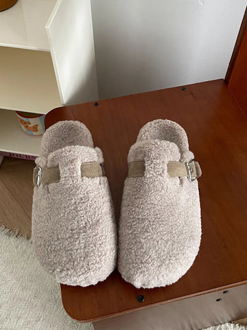 On the fence about this Cozy Plush Buckle Detail Slip-Ons? Don't be. Let our satisfaction guarantee address your concerns.