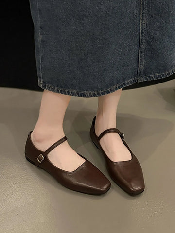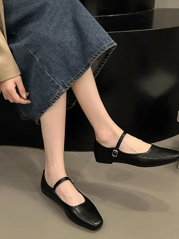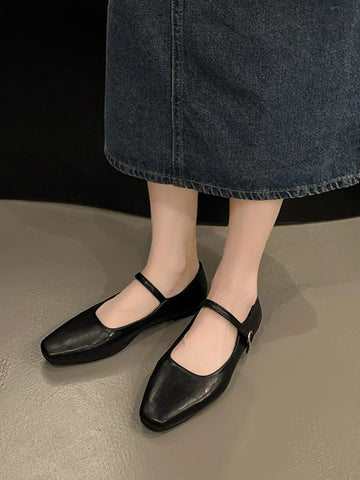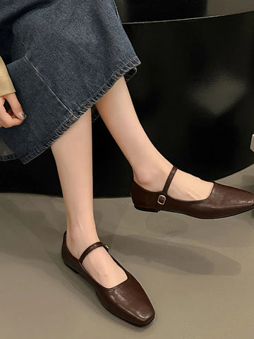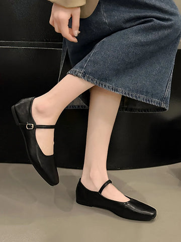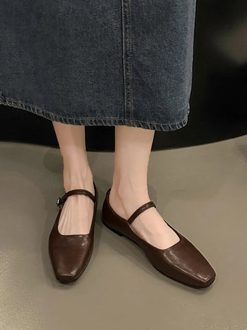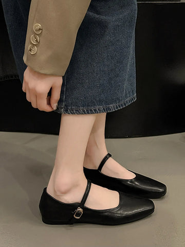 Leather Buckle Mary Jane Loafers