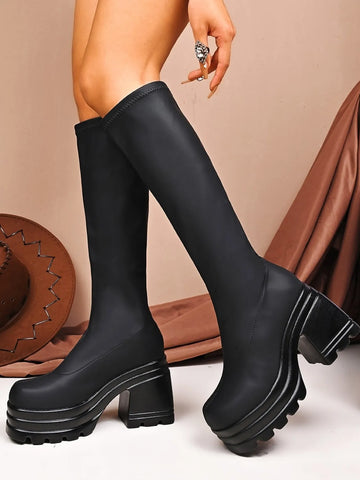 Square Toe Platform Block Heels Boots