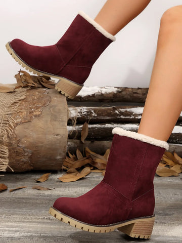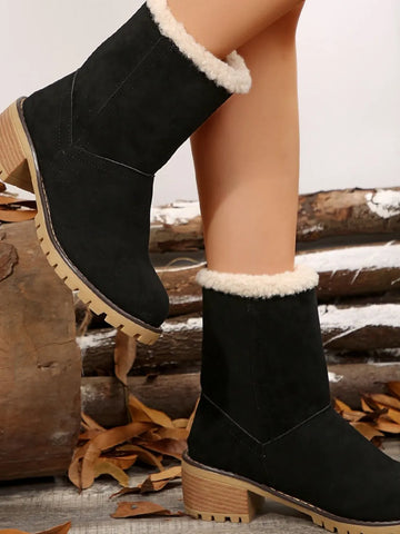 Thermal Fuzzy Block Heel Boots