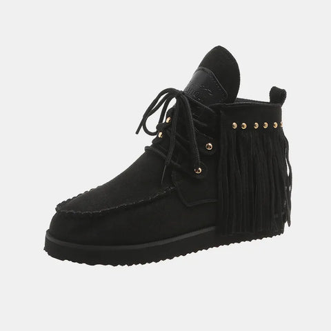 Fringe Studded Round Toe Canvas Boots