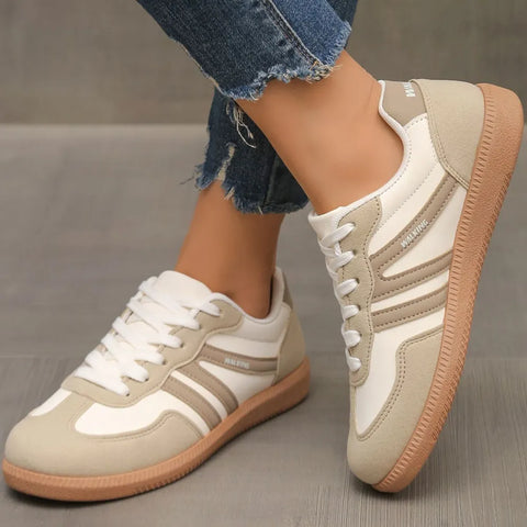 The Contrast Round Toe Lace Up Sneakers is far and away, one of our most popular items. People can't seem to get enough of it.