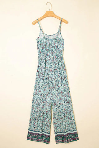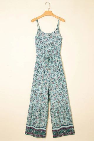 Bohemian Floral Ruffle Bottom Spaghetti Strap Jumpsuit