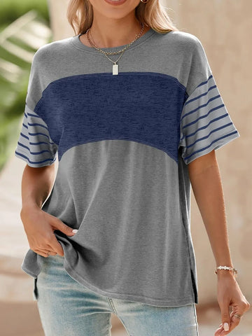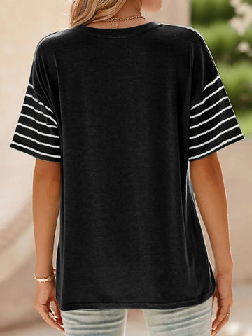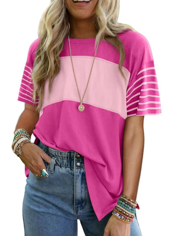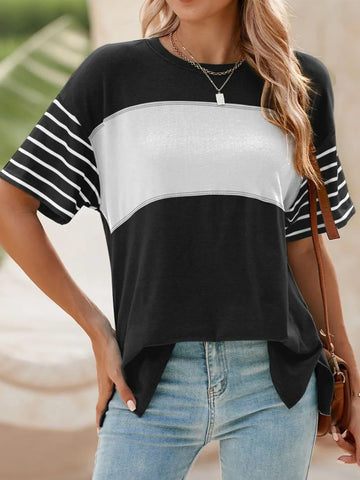 Life is too short to live without the Color Block Striped Sleeve Casual T-Shirt. Be happy. Be Content. Be Satisfied.