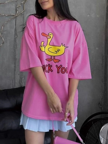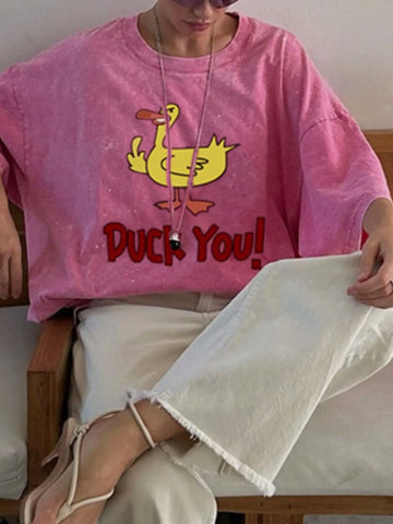 Imagine if you could be satisfied and content with your purchase. That can very much be your reality with the Duck Graphic Oversized Round Neck T-Shirt.