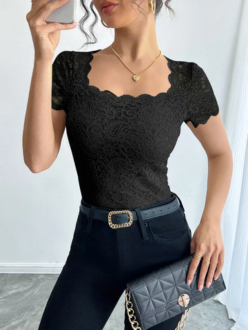 The Floral Lace Square Neck T-Shirt was built with people like you in mind. Something to keep you happy. Every. Single. Day.