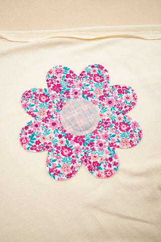 The Flower Patched Exposed Stitching Trim Crew Neck Loose Tee was built with people like you in mind. Something to keep you happy. Every. Single. Day.
