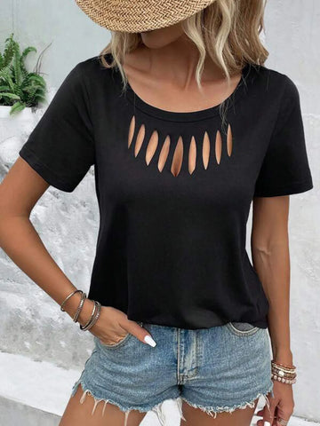 The Hollow Out Neckline Short Sleeve T-Shirt is the product you didn't think you need, but once you have it, something you won't want to live without.