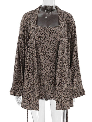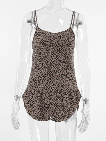 Leopard Cami Cardigan and Shorts 3-Piece Set