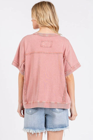 Mittoshop Mineral Wash French Terry Crew Neck Casual Top