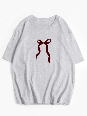 Plus Size Bow Round Neck Short Sleeve T-Shirt