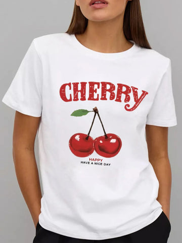 Imagine if you could be satisfied and content with your purchase. That can very much be your reality with the Plus Size Cherry Graphic Round Neck Short Sleeve T-Shirt.