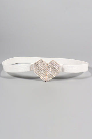 Rhinestone Heart Buckle Elastic Belt