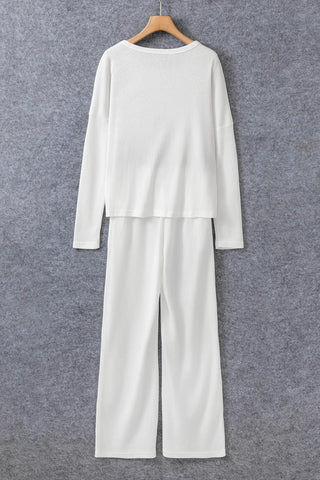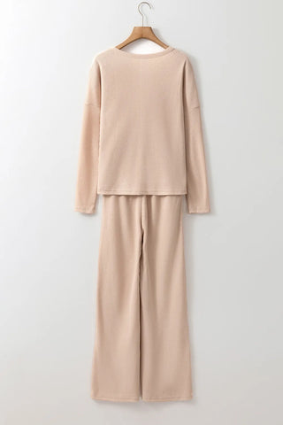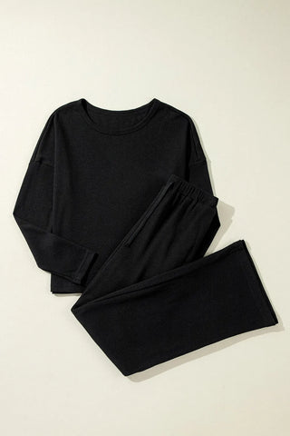 Round Neck Long Sleeve Top and Drawstring Pants Lounge Set