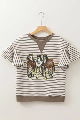 The Sequin Striped Round Neck T-Shirt is evocative, to say the least, but that's why you're drawn to it in the first place.
