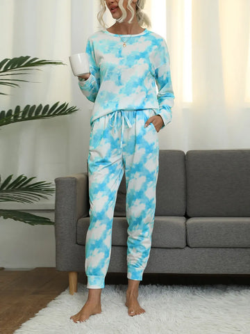 Shiny Tie-Dye Round Neck Top and Pants Lounge Set