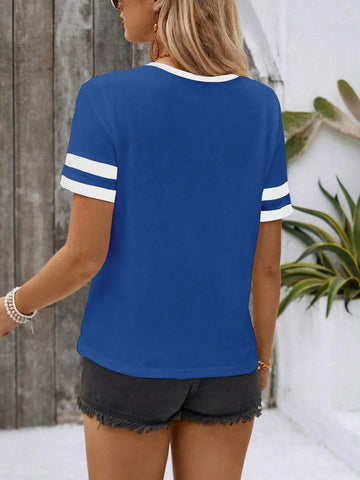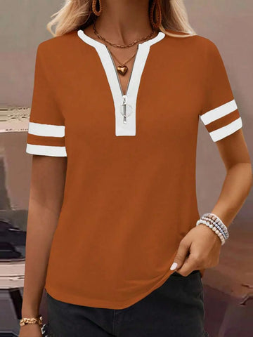 Striped Short Sleeve Half Zip Top